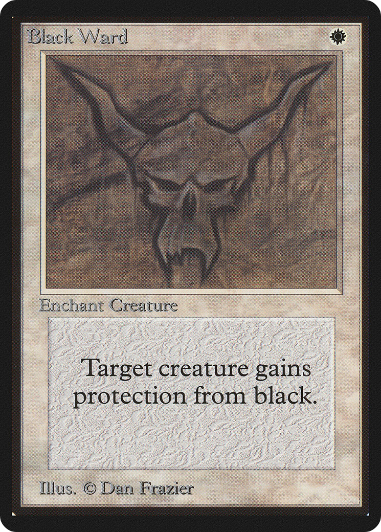 Enchanted creature has protection from black. This effect doesn't remove this Aura.