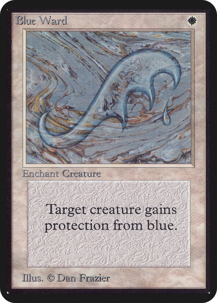 Enchanted creature has protection from blue. This effect doesn't remove this Aura.